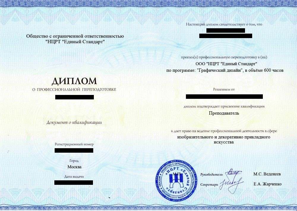 • Диплом о профессиональной переподготовке установленного образца. Срок действия:  бессрочно
